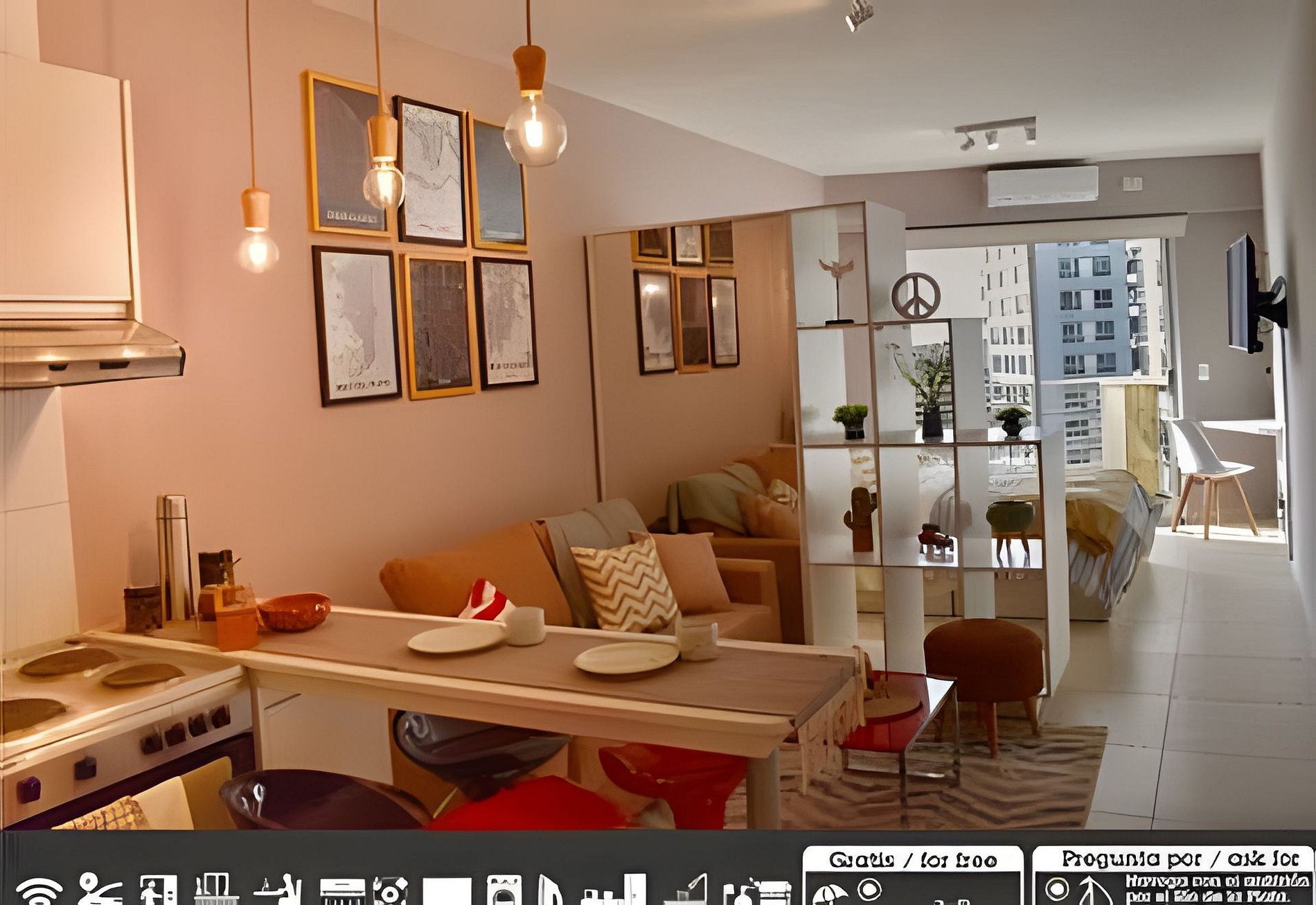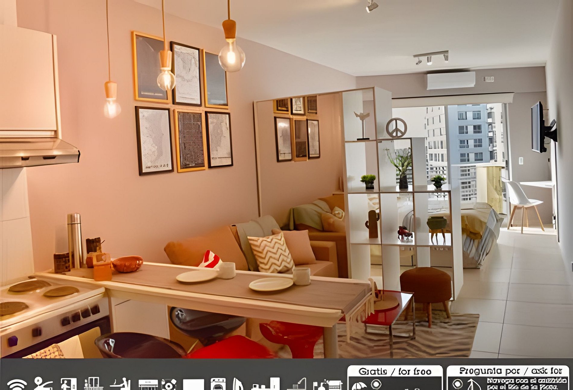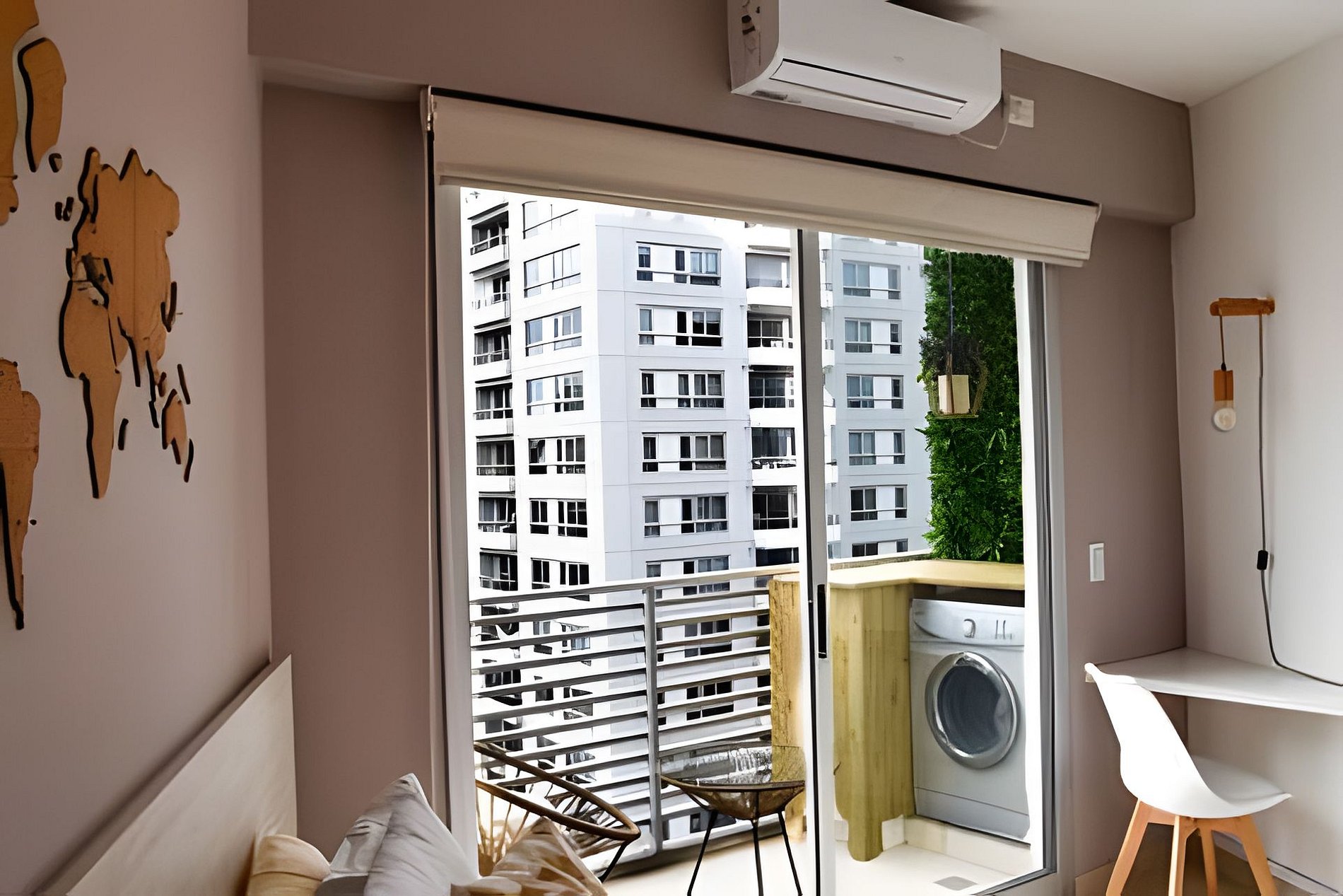 Hermoso departamento de 37 m² en un edificio nuevo, ubicado en el 10° piso, con excelente iluminación natural y una decoración moderna de inspiración viajera. Cada detalle está pensado para crear un ambiente acogedor y funcional, ideal para estancias cortas o largas. El departamento cuenta con: • Living comedor amplio con sofá cama y detalles de diseño escandinavo. • Dormitorio confortable con sommier de dos plazas, escritorio de trabajo y salida directa al balcón. La pared decorada con un mapamundi de corcho aporta un toque temático que invita a soñar con nuevos destinos. • Balcón con vista abierta a la ciudad, equipado con sillas, mesa y lavarropas. • Cocina integrada con horno eléctrico, anafe y barra desayunadora. • Baño completo con ducha y agua caliente central. Servicios incluidos: Cochera gratuita dentro del edificio (para autos pequeños o medianos).WIFI de alta velocidad. Aire acondicionado frío/calor. Caja de seguridad. Acceso a la piscina en la terraza, ideal para relajarse con vistas panorámicas de la ciudad. El edificio es nuevo, seguro y bien ubicado, cercano a transporte público, zonas gastronómicas y comerciales.