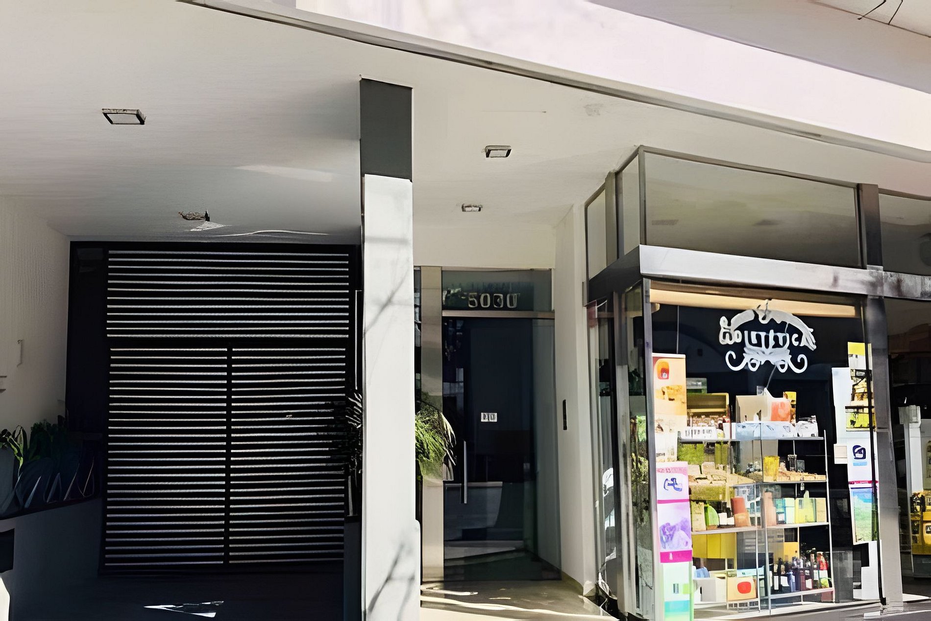 En su base, el edificio cuenta con cuatro niveles de cocheras cubiertas, accesibles mediante elevador mecánico para vehículos, y un hall de entrada moderno con frente vidriado a la calle. El zócalo comercial en planta baja suma dinamismo urbano al conjunto, integrando locales y acceso peatonal bajo un alero de hormigón.