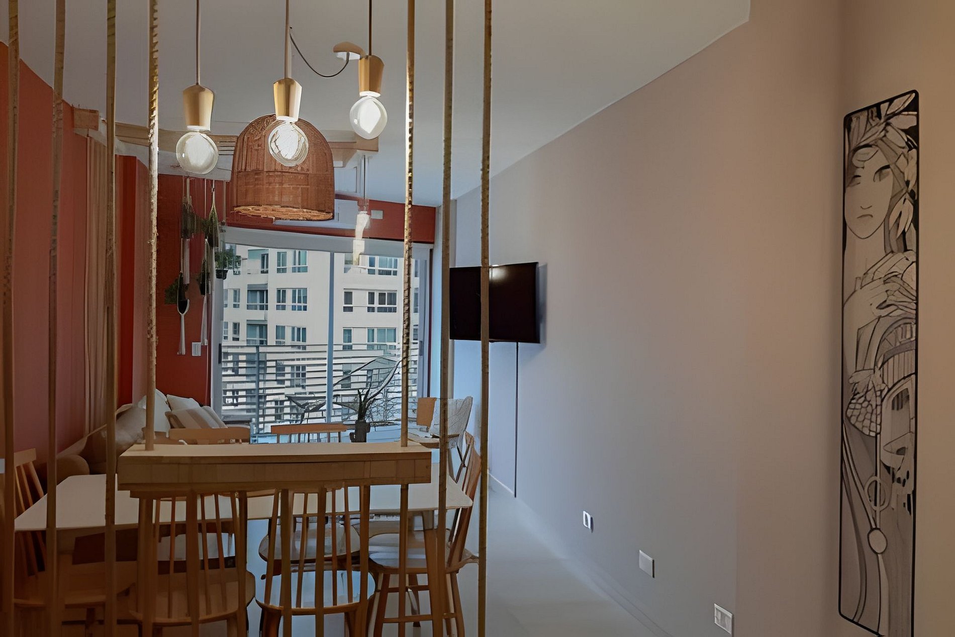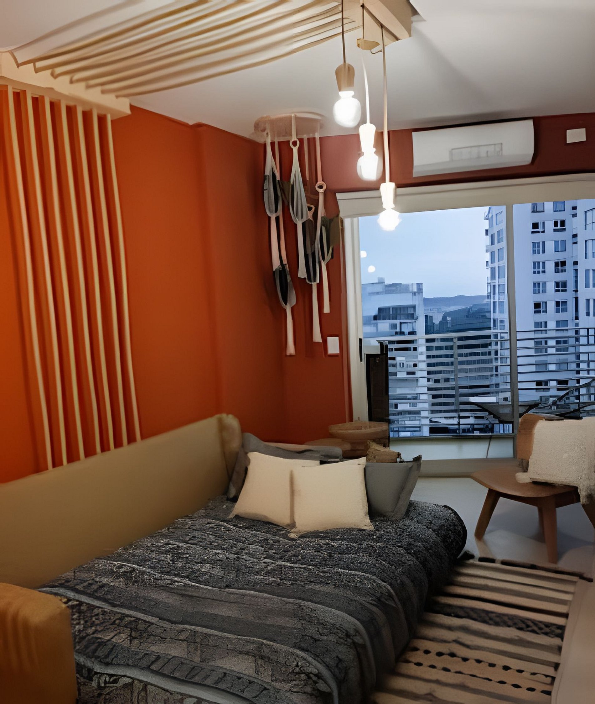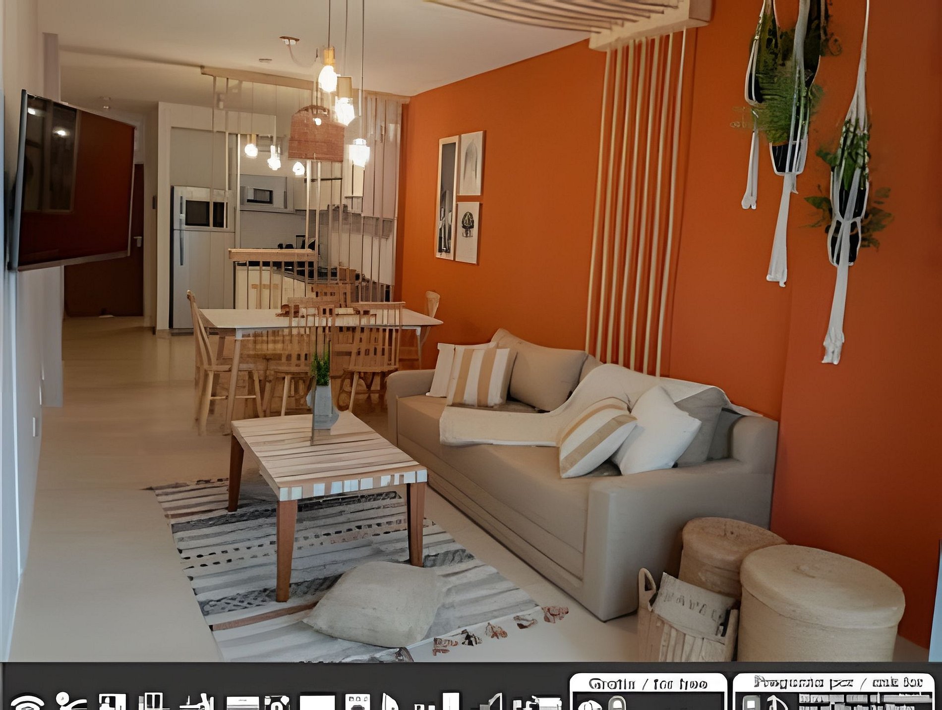 Este departamento combina luz, calidez y diseño, pensado para quienes buscan relajarse en un espacio moderno, natural y acogedor. La decoración, inspirada en el estilo boho contemporáneo, mezcla materiales nobles —maderas claras, sogas, fibras naturales y lino— con una paleta de tonos terracota, beige y arena que invitan a desconectarse y disfrutar. El living comedor es amplio y luminoso, con un gran sofá cama tapizado en tonos neutros, alfombras artesanales y detalles hechos a mano que aportan textura y carácter. Las lámparas colgantes de mimbre y las plantas naturales crean un ambiente relajado y acogedor, ideal para descansar o compartir una cena en familia. El espacio se abre hacia un balcón con vistas despejadas a la ciudad y al Río de la Plata, equipado con una mesa de exterior, sillas de diseño y una hamaca colgante perfecta para leer, disfrutar un mate al atardecer o un vino bajo el cielo porteño. La habitación principal combina confort y estilo con una cama matrimonial de gran calidad, cabecero artesanal tallado en madera, placard espejado, caja de seguridad, televisor Smart TV y un pequeño escritorio de trabajo con luz natural. La segunda habitación ofrece dos camas individuales con textiles suaves, iluminación cálida y detalles de diseño que aportan serenidad, ideal para amigos, niños o estancias familiares. La cocina integrada se presenta moderna y funcional, con horno y cocina eléctrica, microondas, tostadora, pava y licuadora eléctrica, vajilla completa y utensilios para cocinar con comodidad. Ofrecemos café y té de cortesía para que cada día empiece con un toque hogareño. El baño principal, decorado con cerámicos verdes y detalles de plantas colgantes, cuenta con ducha tipo “rain shower”, toallas, amenities y secador de pelo. Además, el departamento dispone de un toilette adicional, WiFi de alta velocidad y aire acondicionado frío/calor en todos los ambientes. Para mayor comodidad, se incluye una cochera cubierta dentro del edificio, apta para autos medianos (no apta para camionetas grandes). El edificio es nuevo y moderno, con una terraza espectacular con piscina, solárium y vistas panorámicas de Buenos Aires. También ofrece un área de bicicletas disponible para recorrer el barrio y disfrutar Palermo de forma sostenible. Ubicado en una de las zonas más lindas y seguras de la ciudad, cerca de cafés, restaurantes, parques y tiendas de diseño, este espacio fue pensado para que cada huésped viva Buenos Aires como un local, rodeado de belleza, calma y estilo.