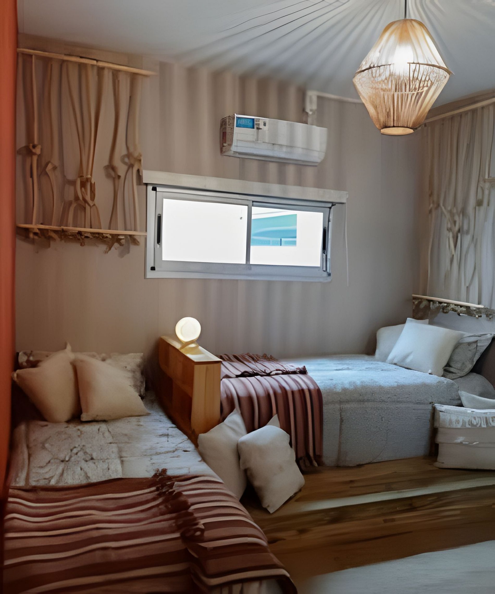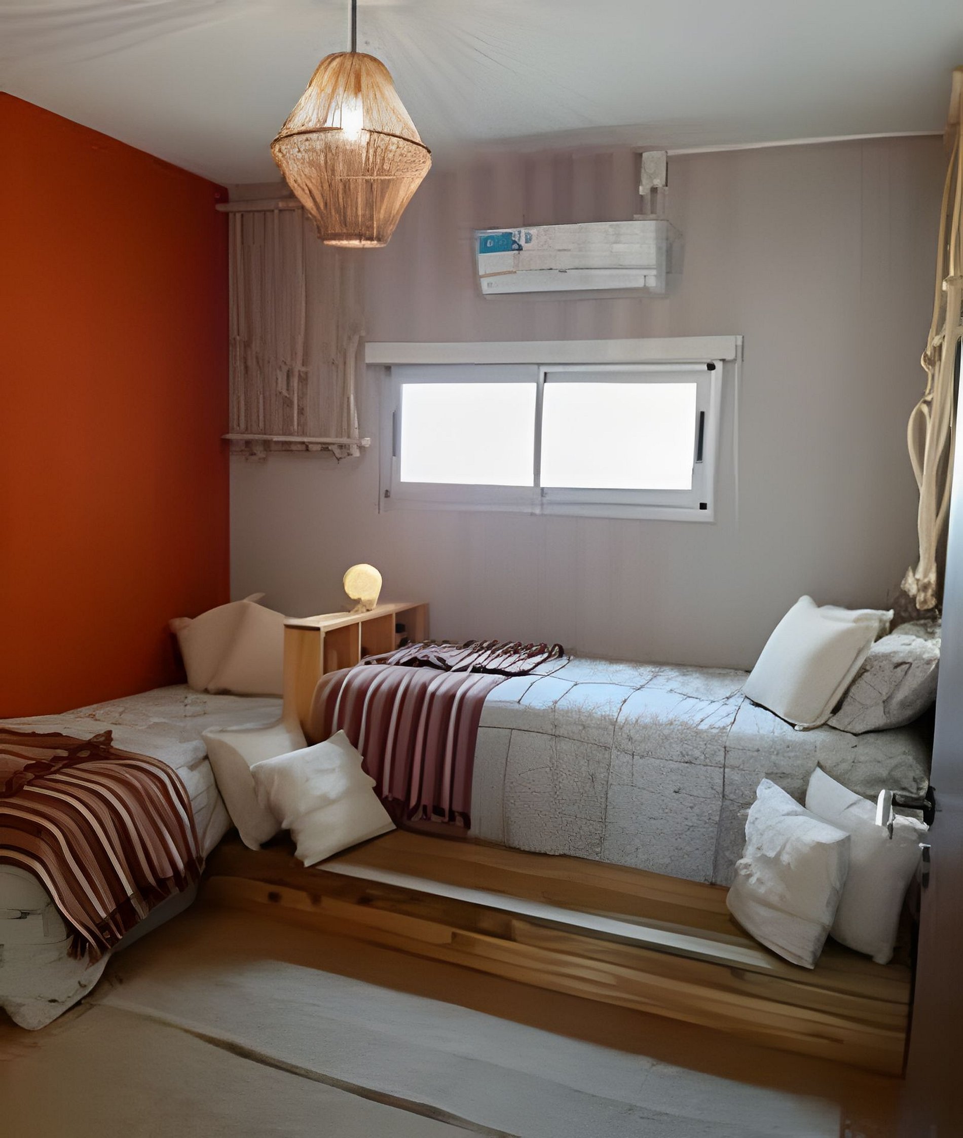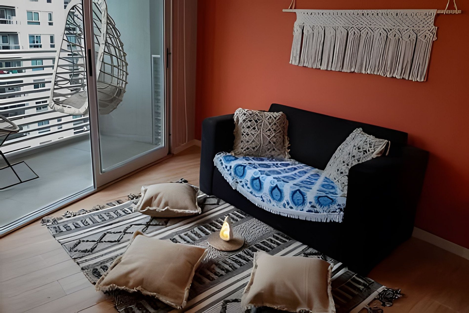 Este departamento combina luz, calidez y diseño, pensado para quienes buscan relajarse en un espacio moderno, natural y acogedor. La decoración, inspirada en el estilo boho contemporáneo, mezcla materiales nobles —maderas claras, sogas, fibras naturales y lino— con una paleta de tonos terracota, beige y arena que invitan a desconectarse y disfrutar. El living comedor es amplio y luminoso, con un gran sofá cama tapizado en tonos neutros, alfombras artesanales y detalles hechos a mano que aportan textura y carácter. Las lámparas colgantes de mimbre y las plantas naturales crean un ambiente relajado y acogedor, ideal para descansar o compartir una cena en familia. El espacio se abre hacia un balcón con vistas despejadas a la ciudad y al Río de la Plata, equipado con una mesa de exterior, sillas de diseño y una hamaca colgante perfecta para leer, disfrutar un mate al atardecer o un vino bajo el cielo porteño. La habitación principal combina confort y estilo con una cama matrimonial de gran calidad, cabecero artesanal tallado en madera, placard espejado, caja de seguridad, televisor Smart TV y un pequeño escritorio de trabajo con luz natural. La segunda habitación ofrece dos camas individuales con textiles suaves, iluminación cálida y detalles de diseño que aportan serenidad, ideal para amigos, niños o estancias familiares. La cocina integrada se presenta moderna y funcional, con horno y cocina eléctrica, microondas, tostadora, pava y licuadora eléctrica, vajilla completa y utensilios para cocinar con comodidad. Ofrecemos café y té de cortesía para que cada día empiece con un toque hogareño. El baño principal, decorado con cerámicos verdes y detalles de plantas colgantes, cuenta con ducha tipo “rain shower”, toallas, amenities y secador de pelo. Además, el departamento dispone de un toilette adicional, WiFi de alta velocidad y aire acondicionado frío/calor en todos los ambientes. Para mayor comodidad, se incluye una cochera cubierta dentro del edificio, apta para autos medianos (no apta para camionetas grandes). El edificio es nuevo y moderno, con una terraza espectacular con piscina, solárium y vistas panorámicas de Buenos Aires. También ofrece un área de bicicletas disponible para recorrer el barrio y disfrutar Palermo de forma sostenible. Ubicado en una de las zonas más lindas y seguras de la ciudad, cerca de cafés, restaurantes, parques y tiendas de diseño, este espacio fue pensado para que cada huésped viva Buenos Aires como un local, rodeado de belleza, calma y estilo.
