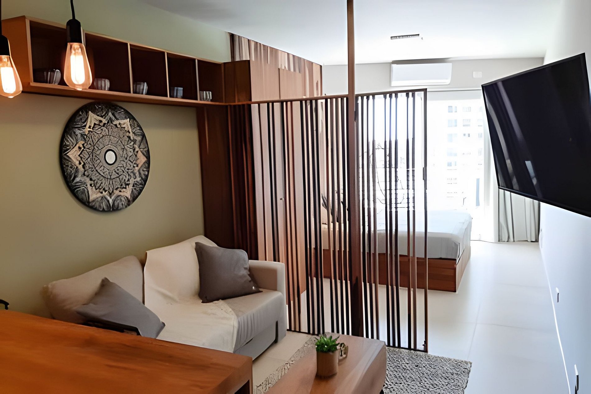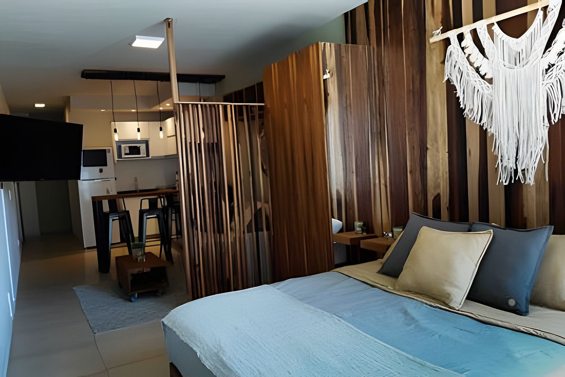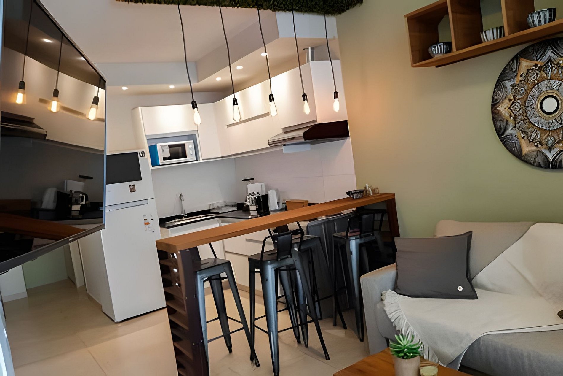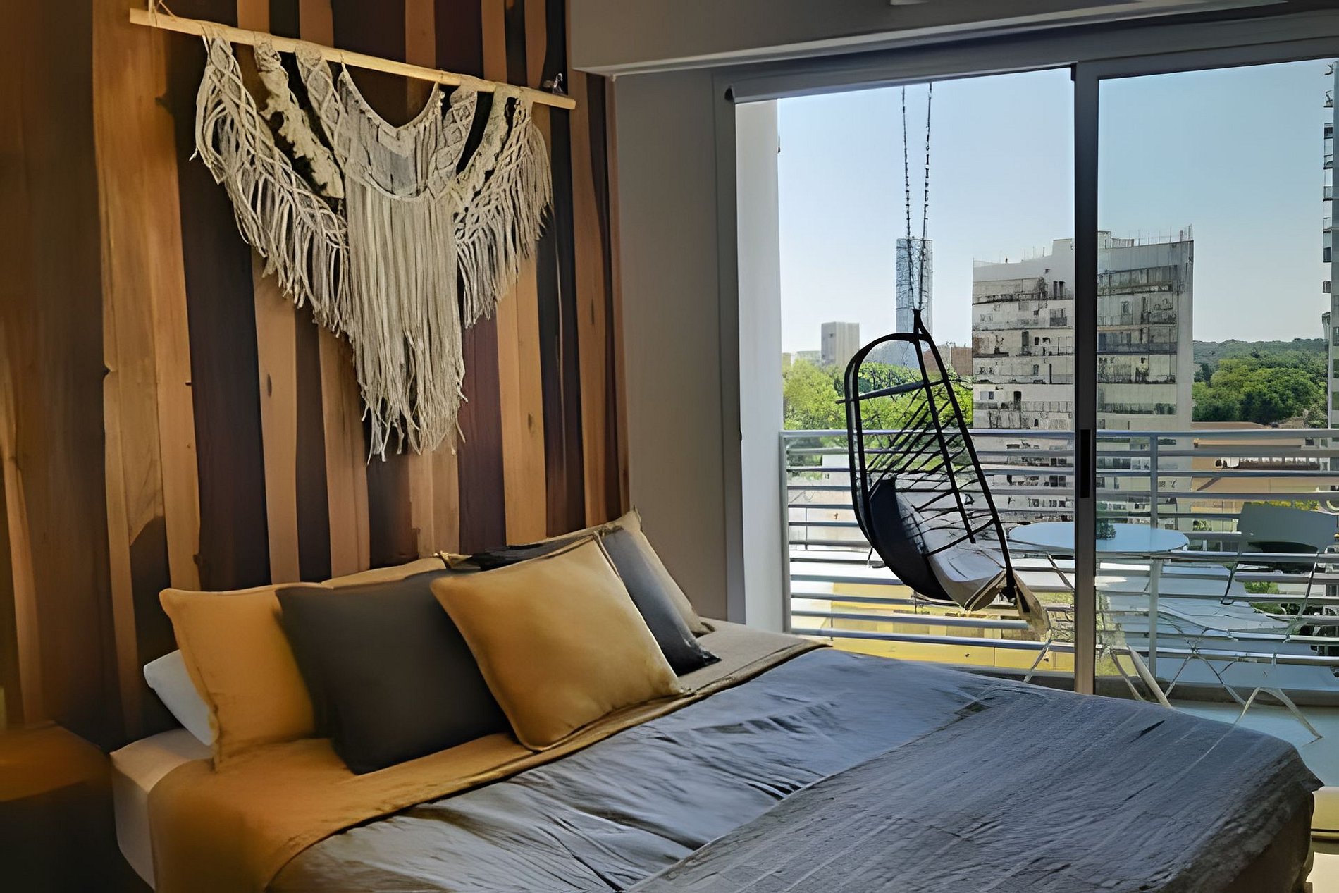Relajate en este luminoso y moderno departamento de 37 m², decorado con un estilo boho–industrial que combina madera, hierro y tonos cálidos. Cuenta con living comedor con sofá cama y Smart TV 43”, cocina totalmente equipada y dormitorio con cama matrimonial. Balcón contrafrente muy luminoso, WiFi, aire frío/calor, caja de seguridad y piscina en la terraza. Ideal para disfrutar Palermo con estilo.