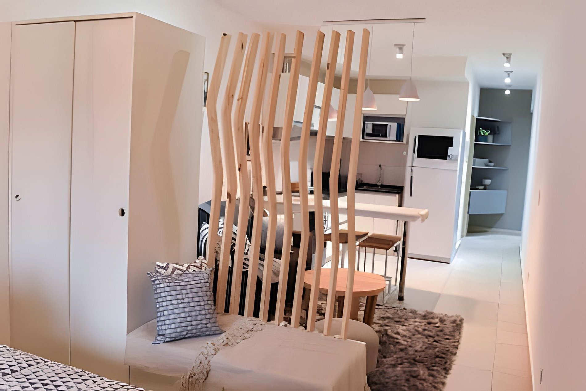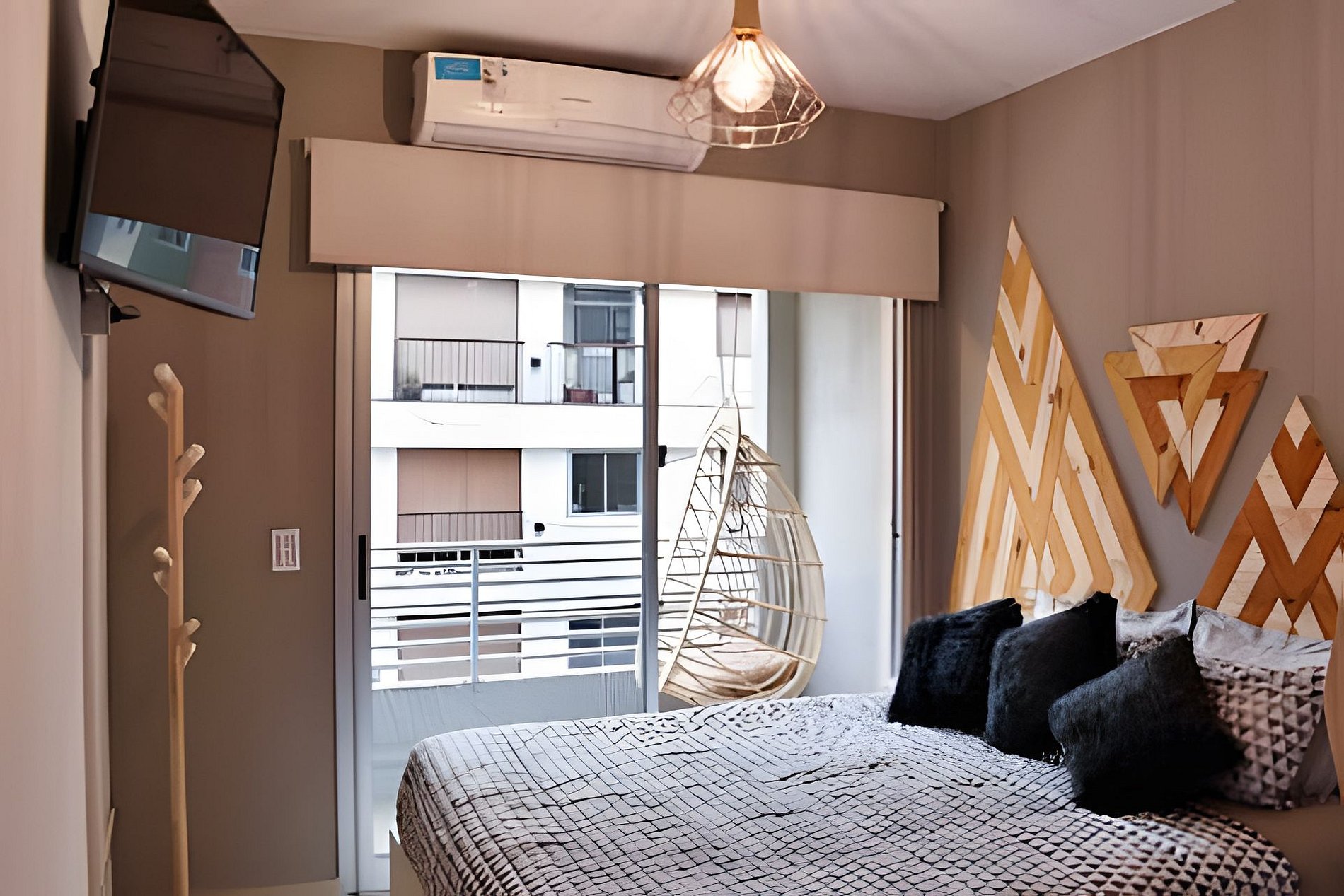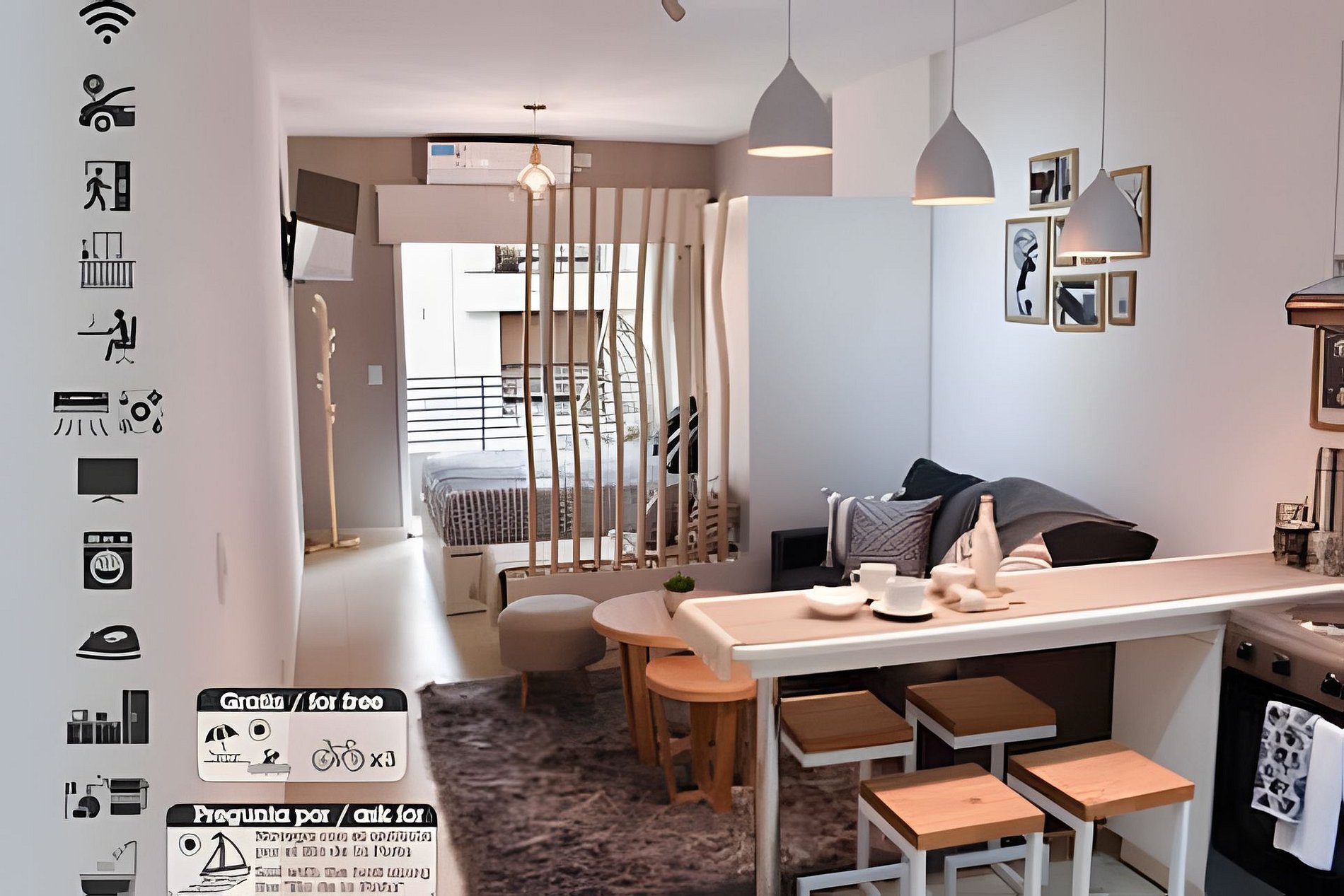 Encantador departamento de 37 m² con diseño nórdico-boho, lleno de luz y detalles naturales en madera. El ambiente principal integra cocina, living y dormitorio mediante un divisor moderno que aporta calidez y privacidad. Dispone de balcón con lavadero y vista abierta, baño completo, Wi-Fi, aire acondicionado frío/calor, caja de seguridad, cochera cubierta y piscina en la terraza. Ideal para disfrutar Buenos Aires con estilo.