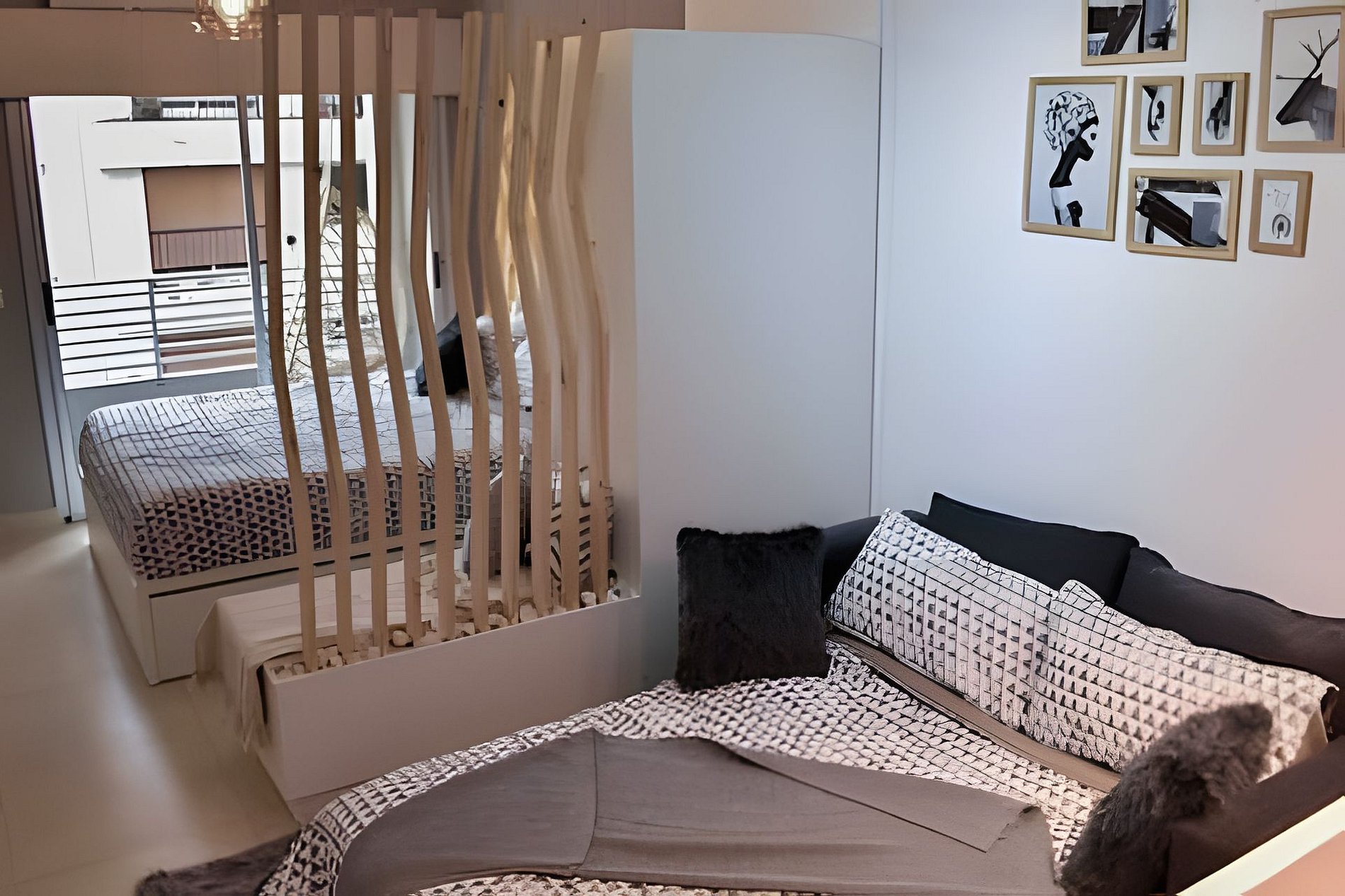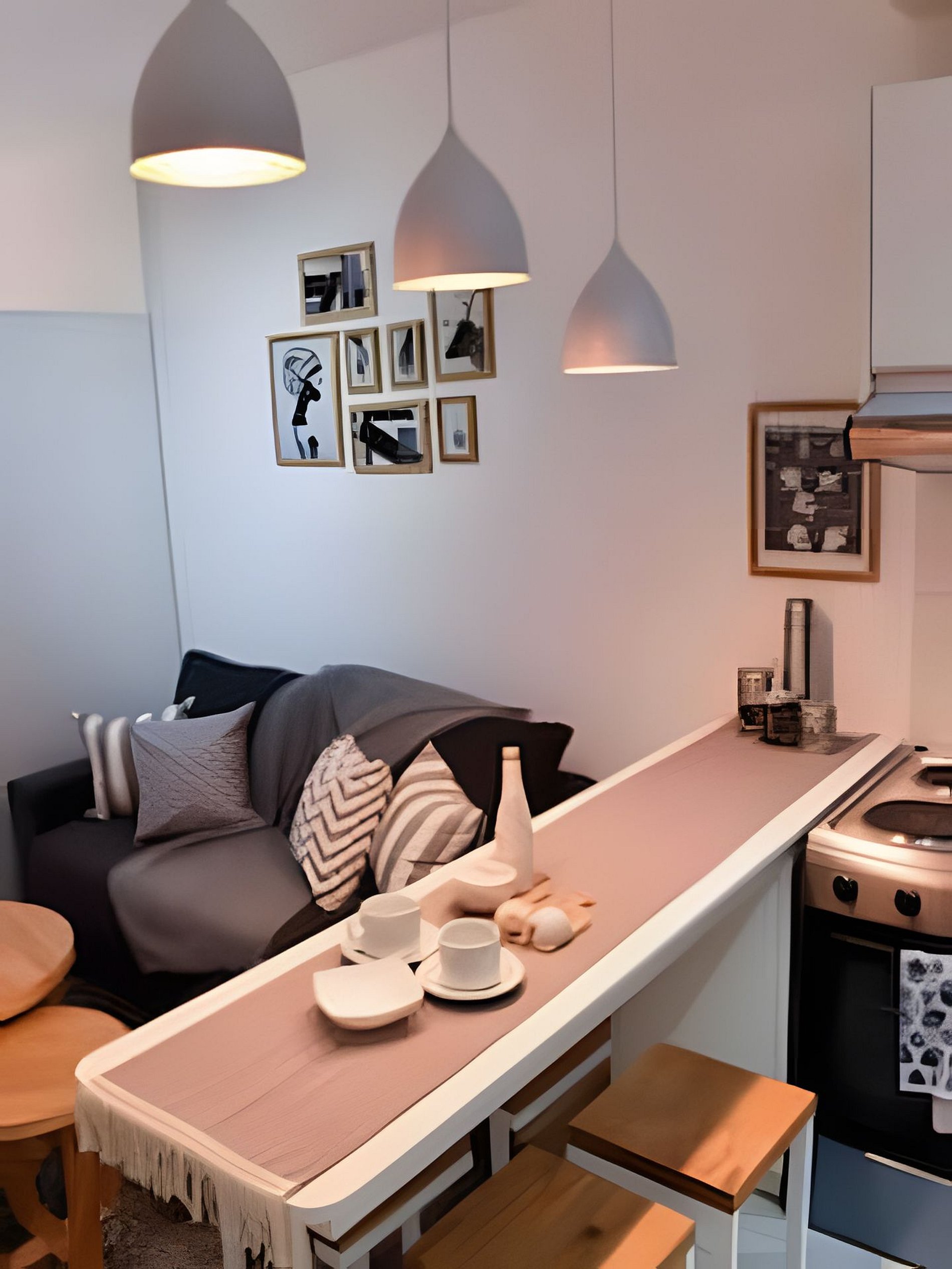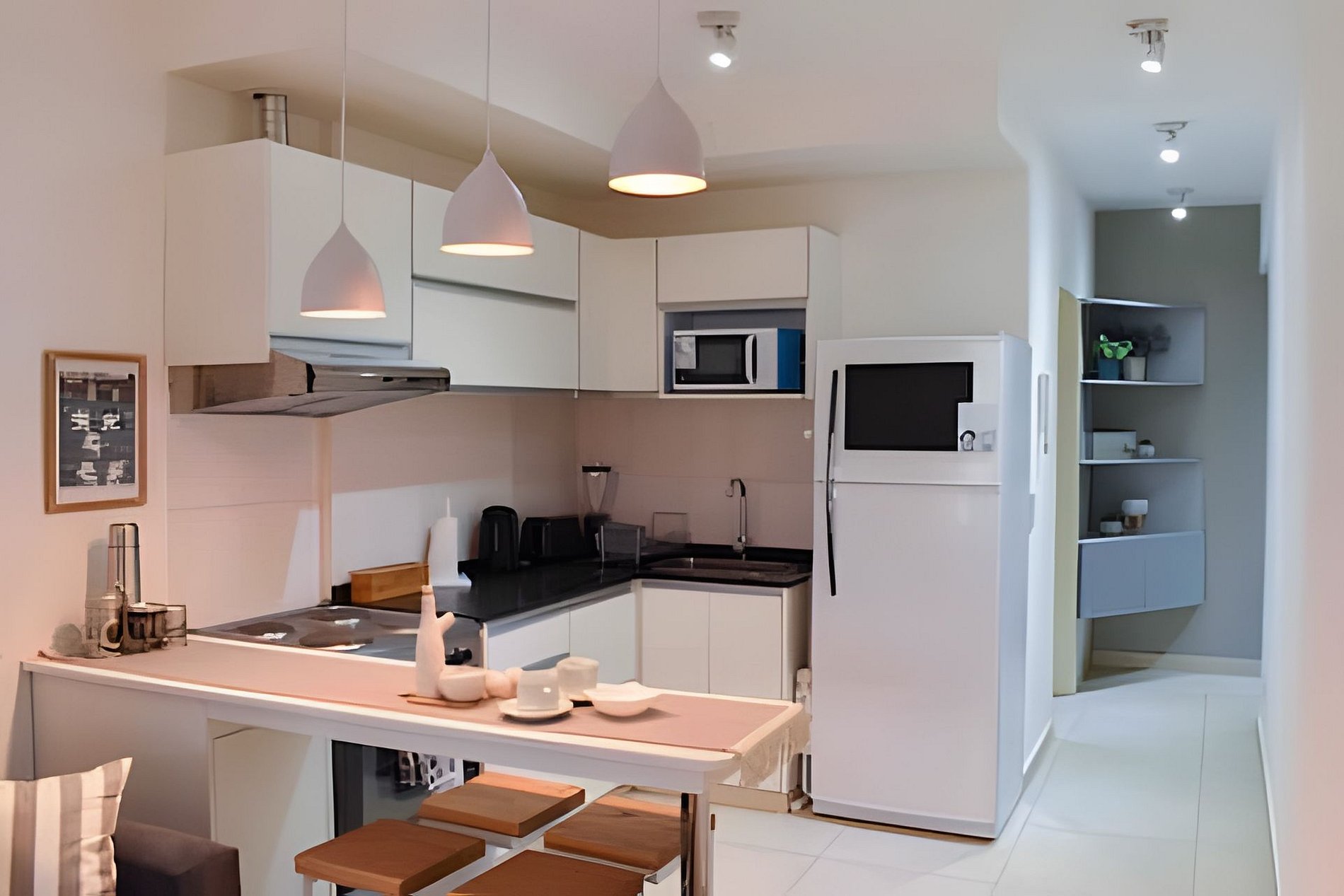 Encantador departamento de 37 m² con diseño nórdico-boho, lleno de luz y detalles naturales en madera. El ambiente principal integra cocina, living y dormitorio mediante un divisor moderno que aporta calidez y privacidad. Dispone de balcón con lavadero y vista abierta, baño completo, Wi-Fi, aire acondicionado frío/calor, caja de seguridad, cochera cubierta y piscina en la terraza. Ideal para disfrutar Buenos Aires con estilo.