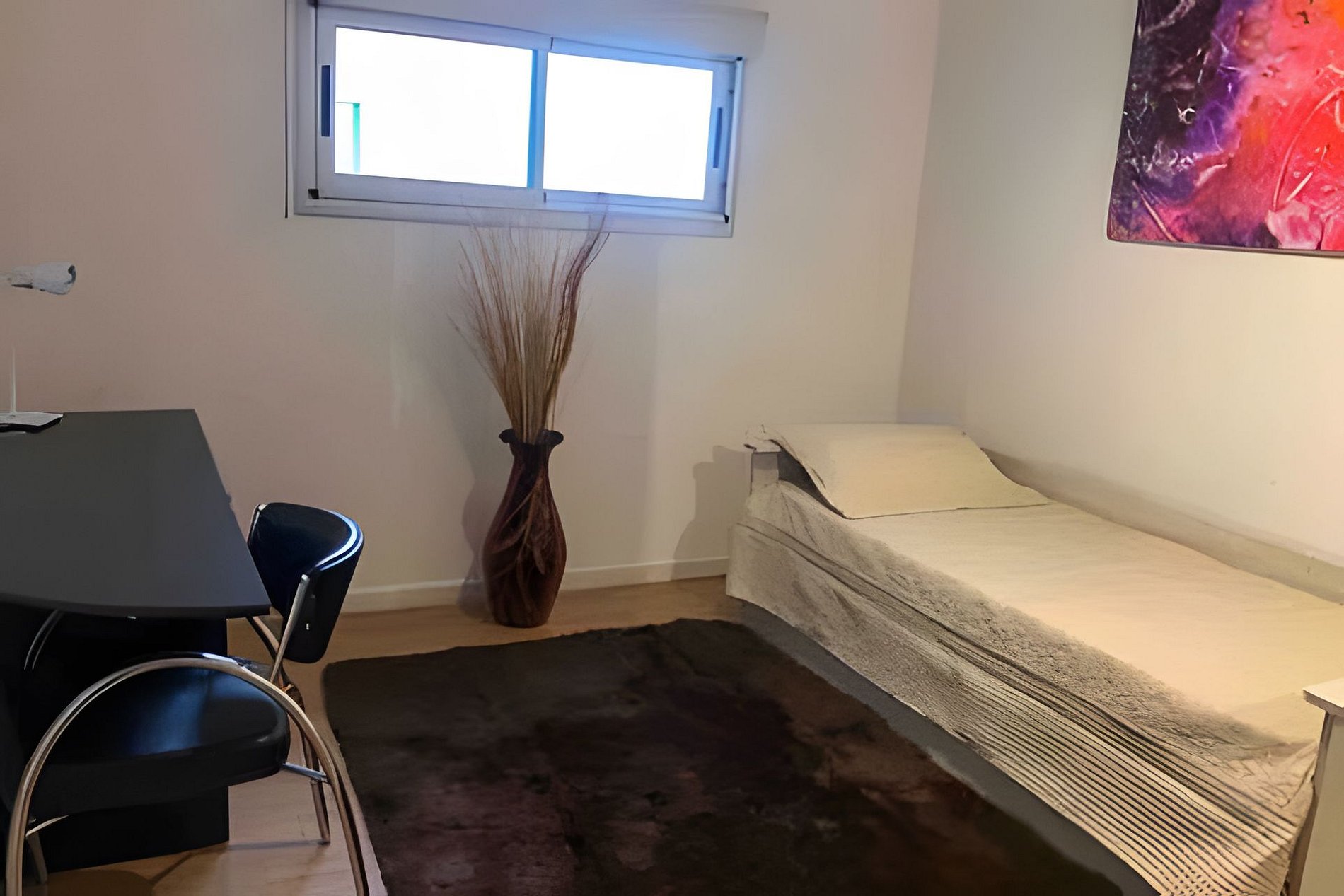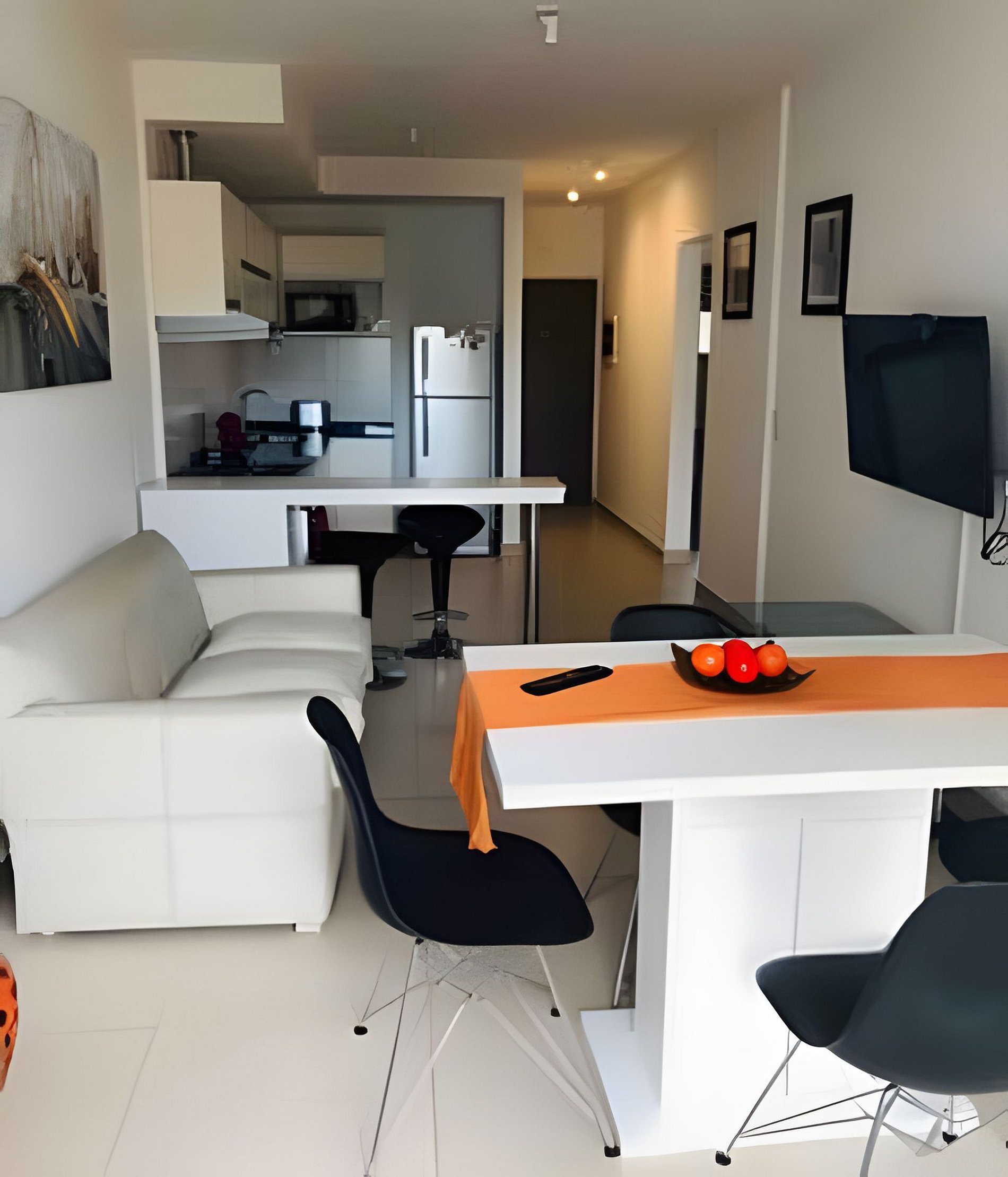 Este departamento se destaca por su luminosidad, tranquilidad y estilo moderno, ubicado en un piso alto con hermosa vista abierta que permite disfrutar de la luz natural durante todo el día. Cada detalle fue pensado para ofrecer comodidad, armonía y una experiencia de estadía agradable, tanto para viajes de placer como de trabajo. Al ingresar, el living comedor recibe con un ambiente cálido y bien iluminado. Cuenta con un amplio sofá cama, una Smart TV de 43 pulgadas, y una mesa de comedor para seis personas, ideal para compartir comidas o momentos de descanso. La decoración combina tonos neutros y acentos naranjas, junto con detalles naturales como jarrones y cuadros urbanos que aportan vitalidad al espacio. La cocina integrada al living se presenta funcional y totalmente equipada: dispone de horno y cocina eléctrica, microondas, licuadora, tostadora, pava eléctrica y utensilios variados. También se incluyen café y té de cortesía para los primeros desayunos. Su diseño moderno permite cocinar y socializar sin aislarse del resto del ambiente, lo que crea un espacio práctico y ameno. La habitación principal es amplia y muy luminosa, equipada con una cómoda cama matrimonial que puede convertirse en dos camas individuales, según la preferencia de los huéspedes. Cuenta además con un amplio placard con puertas espejadas, caja de seguridad, y aire acondicionado frío/calor, garantizando confort en cualquier época del año. La ropa de cama es de calidad hotelera y los detalles decorativos, en tonos claros con toques rojos, aportan una sensación de calidez y serenidad. La segunda habitación es versátil y funcional, equipada con una cama nido doble o una cama individual según la configuración. También dispone de escritorio y silla, ideal para quienes necesitan trabajar o estudiar durante su estadía. Su decoración minimalista, con cuadros coloridos y luz natural, crea un ambiente juvenil y tranquilo. El departamento dispone de un baño principal completo, con ducha vidriada, grifería moderna y una elegante mesada con bacha de diseño. Los mosaicos en tonos verdes y azules le dan un toque distintivo y fresco. Además, hay un toilette adicional para mayor comodidad, especialmente útil cuando se hospedan varias personas. El balcón es otro de los puntos destacados del departamento. Con acceso desde el dormitorio principal, ofrece una vista abierta y una atmósfera perfecta para relajarse. Cuenta con mesa, sillas y una hamaca de esparcimiento, ideal para disfrutar el desayuno al aire libre o contemplar el atardecer porteño. Entre los servicios incluidos se destacan el Wi-Fi de alta velocidad, aire acondicionado frío/calor en todos los ambientes, caja de seguridad, y una cochera cubierta dentro del edificio apta para vehículos pequeños y medianos (las camionetas grandes no son compatibles con el espacio). El edificio es moderno, de excelente mantenimiento, y ofrece a los huéspedes una amplia piscina en la terraza, con solárium y vistas panorámicas, perfecta para disfrutar los días soleados y relajarse después de recorrer la ciudad. En conjunto, se trata de un espacio moderno, luminoso y bien equipado, pensado para disfrutar Buenos Aires con todo el confort de un hogar, en un entorno tranquilo y con detalles que marcan la diferencia.