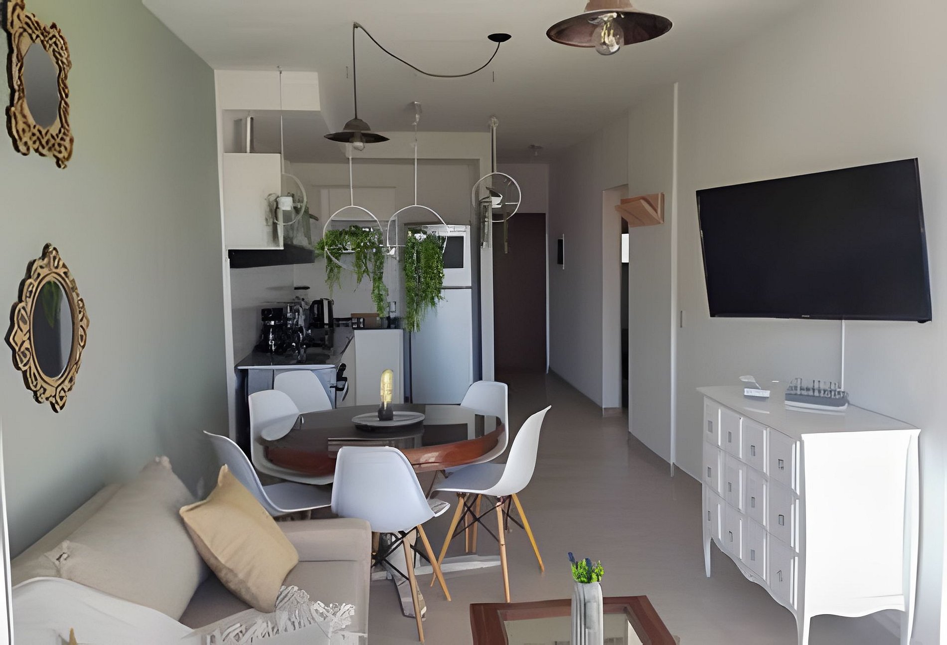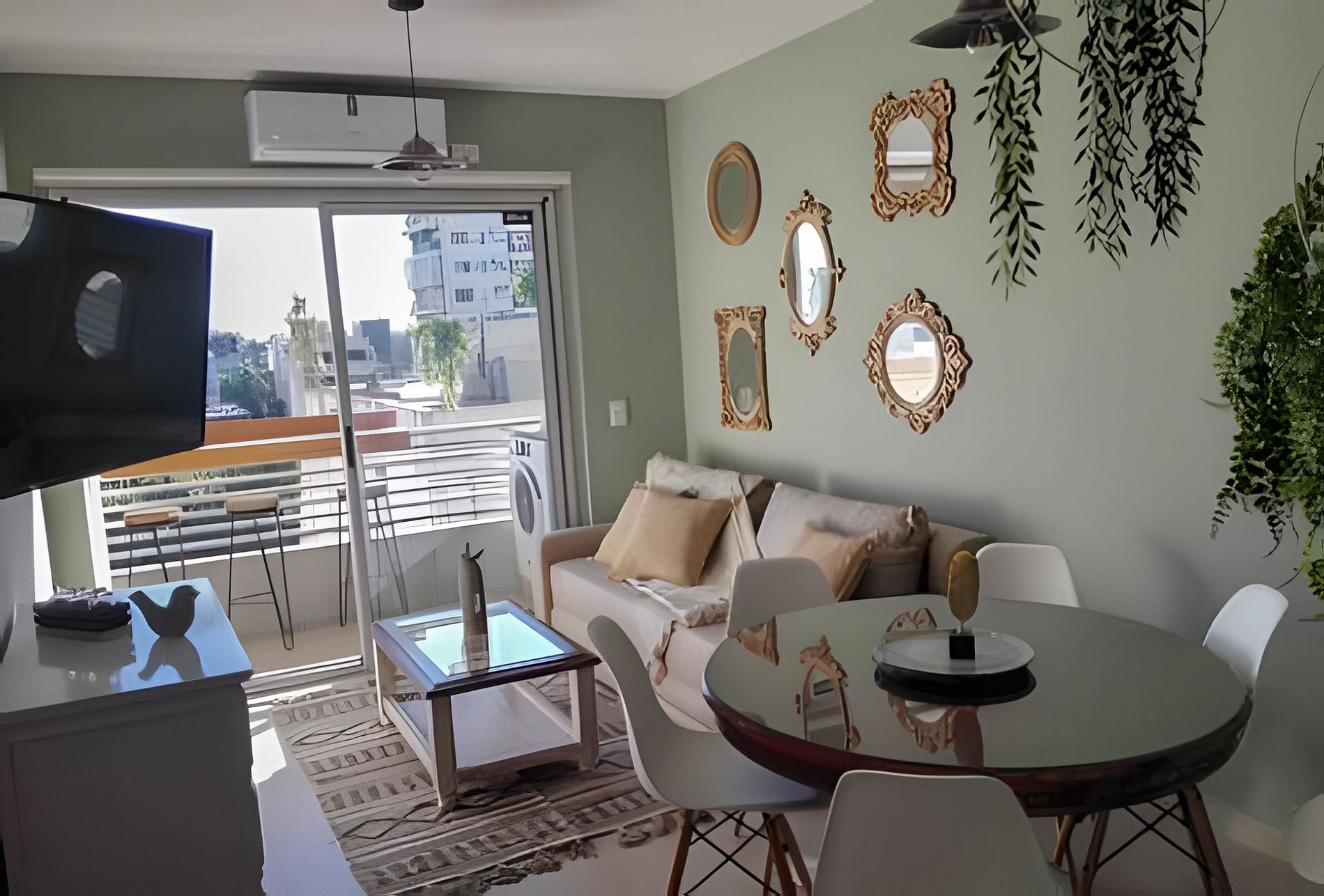 Es un departamento muy luminoso y tranquilo. Que dispone de un living comedor con un un amplio sofá cama Tv 43 pulgadas. Una habitación principal con una confortable cama matrimonial que pueden convertirse en dos camas individuales , un placard con espejo y "caja de seguridad". Un baño muy bien equipado en los que encontrarás shampoo, jabón y crema enjuague para la primer noche. Una cocina integrada al living con una una mesa para 6 personas , con horno cocina eléctrica, microondas, licuadora tostadora, pava eléctrica y utensilios varios. Encontrarán café y te de cortesía para desayunar. Aire acondicionado frio/calor. WiFi. Se proporciona una plaza de estacionamiento apta para vehículos pequeños y medianos. Las camionetas de gran tamaño no son compatibles con el espacio disponible.