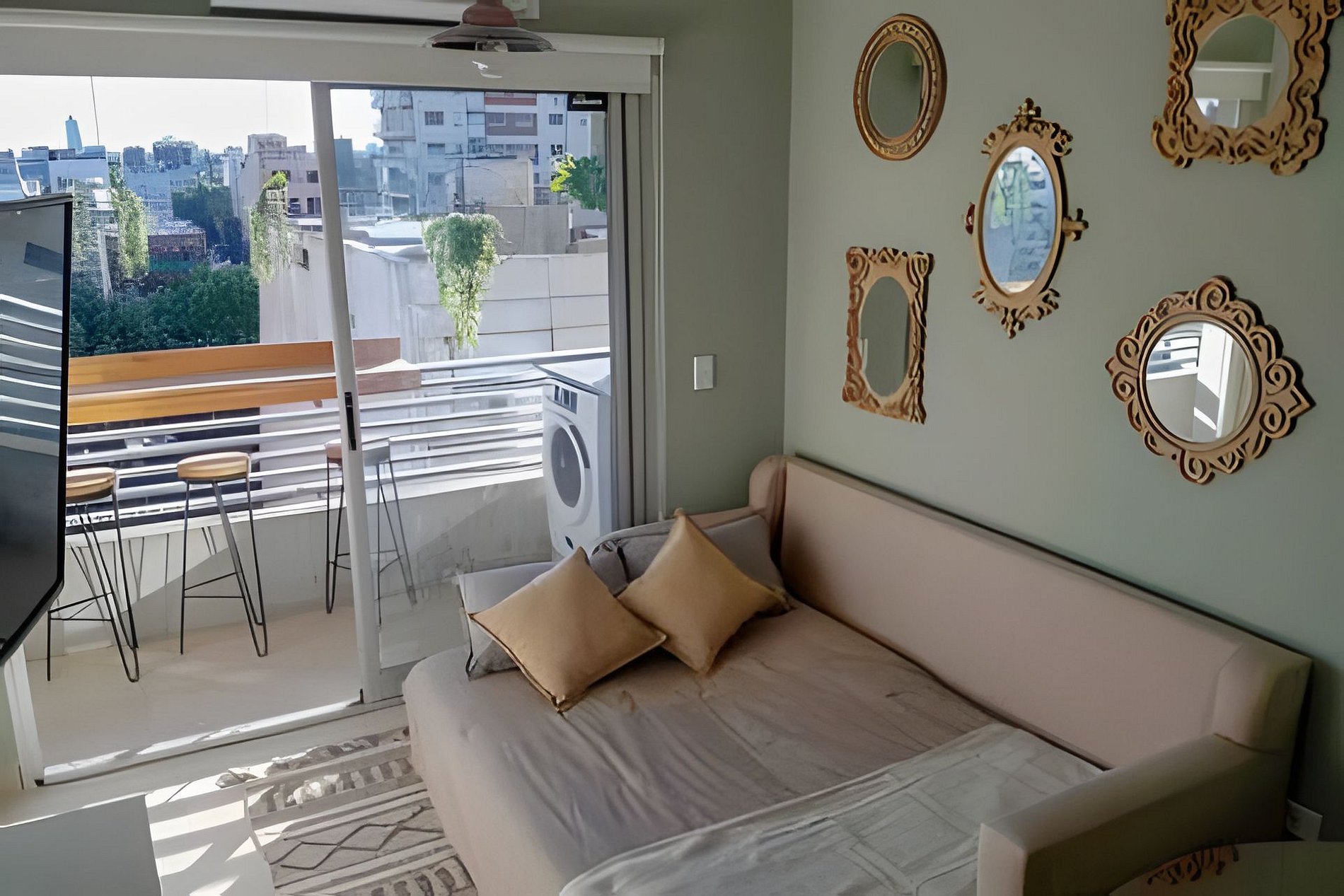 Los huéspedes tienen acceso exclusivo al departamento completo (living comedor, dormitorio, cocina, baño y balcón). Además, podrán disfrutar de las áreas comunes del edificio, que incluyen: • Piscina en la terraza con vistas abiertas. • Cochera cubierta dentro del edificio (apta para autos pequeños y medianos). • Ascensores y pasillos comunes para el acceso al departamento. Por normas del consorcio, no está permitido el acceso a otras áreas privadas del edificio ni el ingreso de mascotas.