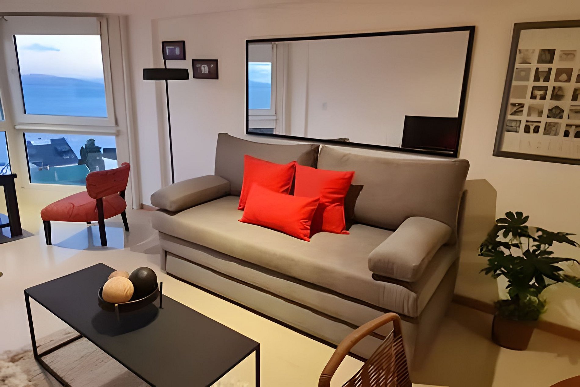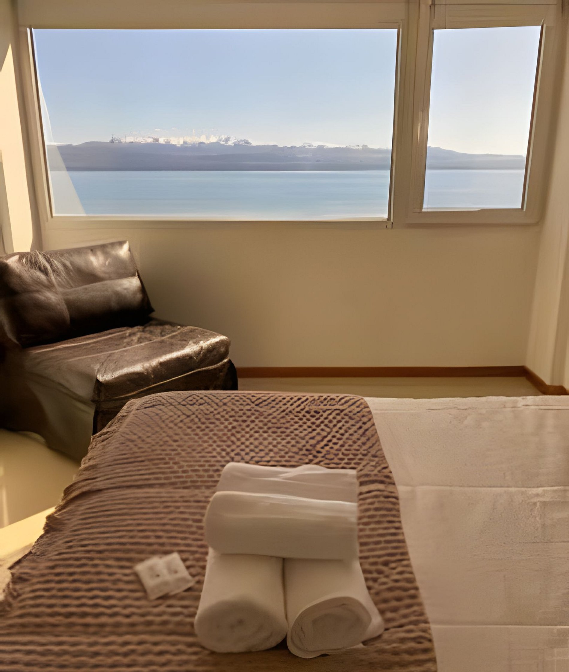 Disfrutá de la tranquilidad y la luz natural en este hermoso departamento de estilo moderno con vista al lago. El amplio living comedor cuenta con un cómodo sofá cama, TV de 45” y mesa para cuatro personas, ideal para relajarte o compartir una comida. La habitación principal ofrece una cama matrimonial, un sofá cama individual, TV de 32” y un amplio placard. El baño completo dispone de shampoo y jabón, y además hay un toilette adicional para mayor comodidad. La cocina integrada está totalmente equipada con horno y cocina a gas, microondas, pava eléctrica, tostadora, utensilios y una práctica barra desayunadora con dos banquetas. Te esperan café, té, yerba y azúcar de cortesía para tus mañanas. El departamento cuenta con WiFi de alta velocidad, aire acondicionado frío/calor y cochera gratuita dentro del edificio. Un espacio luminoso, cómodo y funcional para disfrutar Bariloche con el máximo confort.